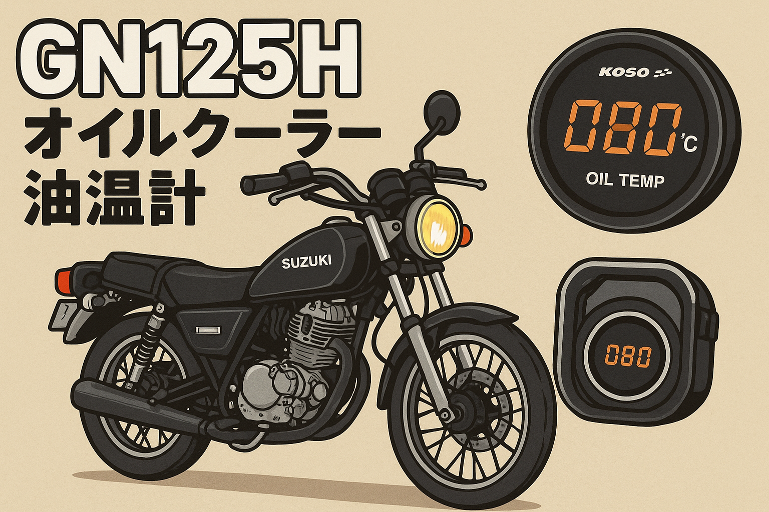 特にGN125Hのような空冷バイクは熱対策が重要なので、オイルクーラー+油温計のセット導入はかなりおすすめですよ!