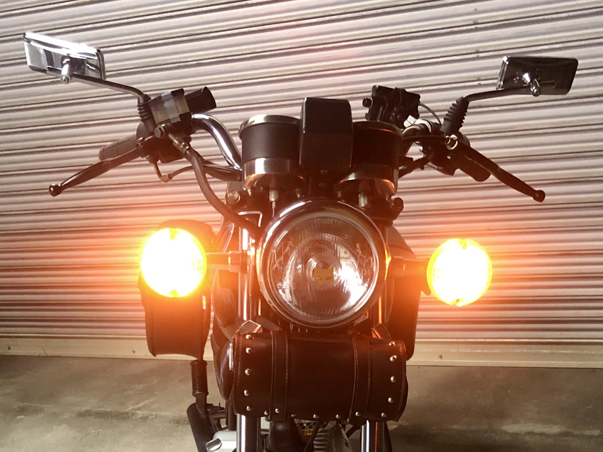 もともとシンプルなデザインのGN125Hですが、ポジションランプを追加することで「視認性アップ+見た目のドレスアップ」を狙ったカスタムです。
