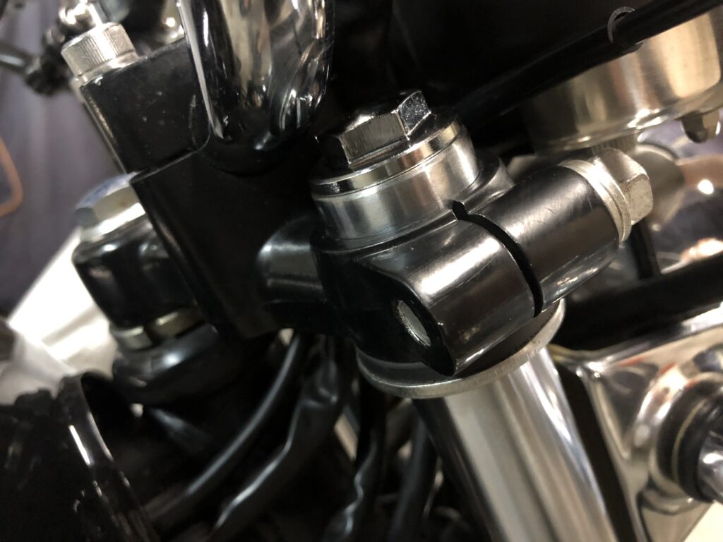 トップブリッジとアンダーブラケットのクランプを緩め、左右のフォークを外す。 - 新品フォークを装着