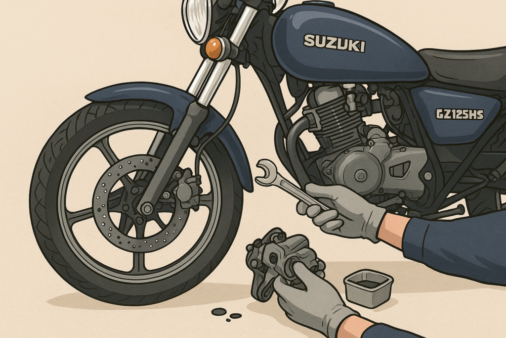 こんにちは!今回は愛車 GZ125HS のフロントブレーキキャリパーをオーバーホールしました。