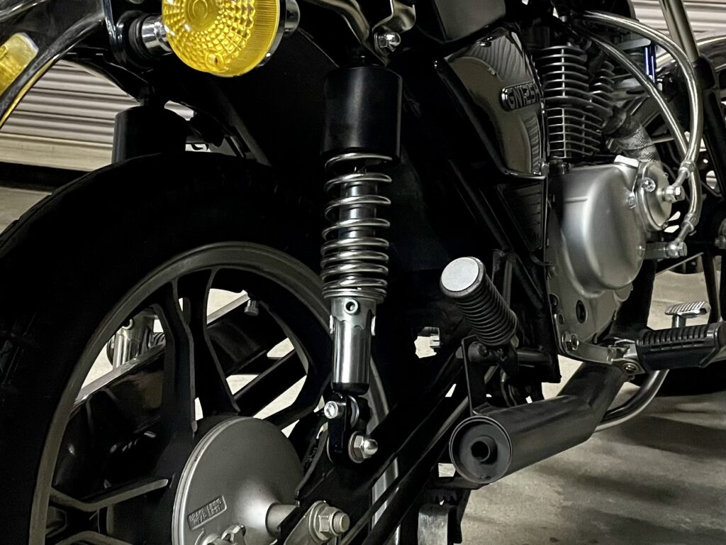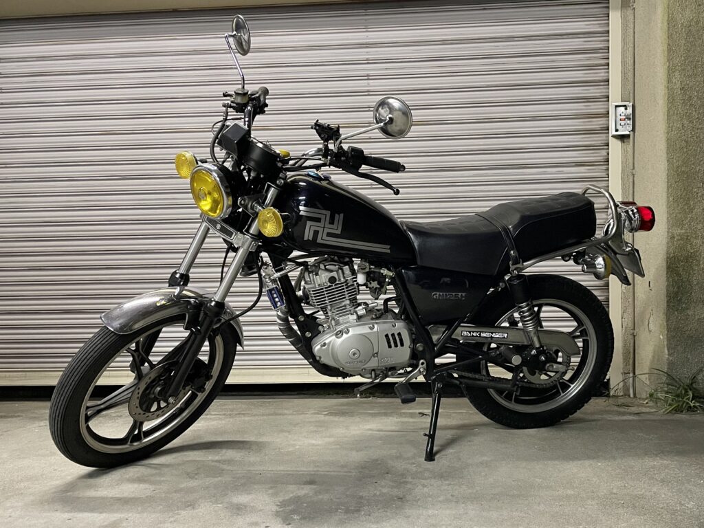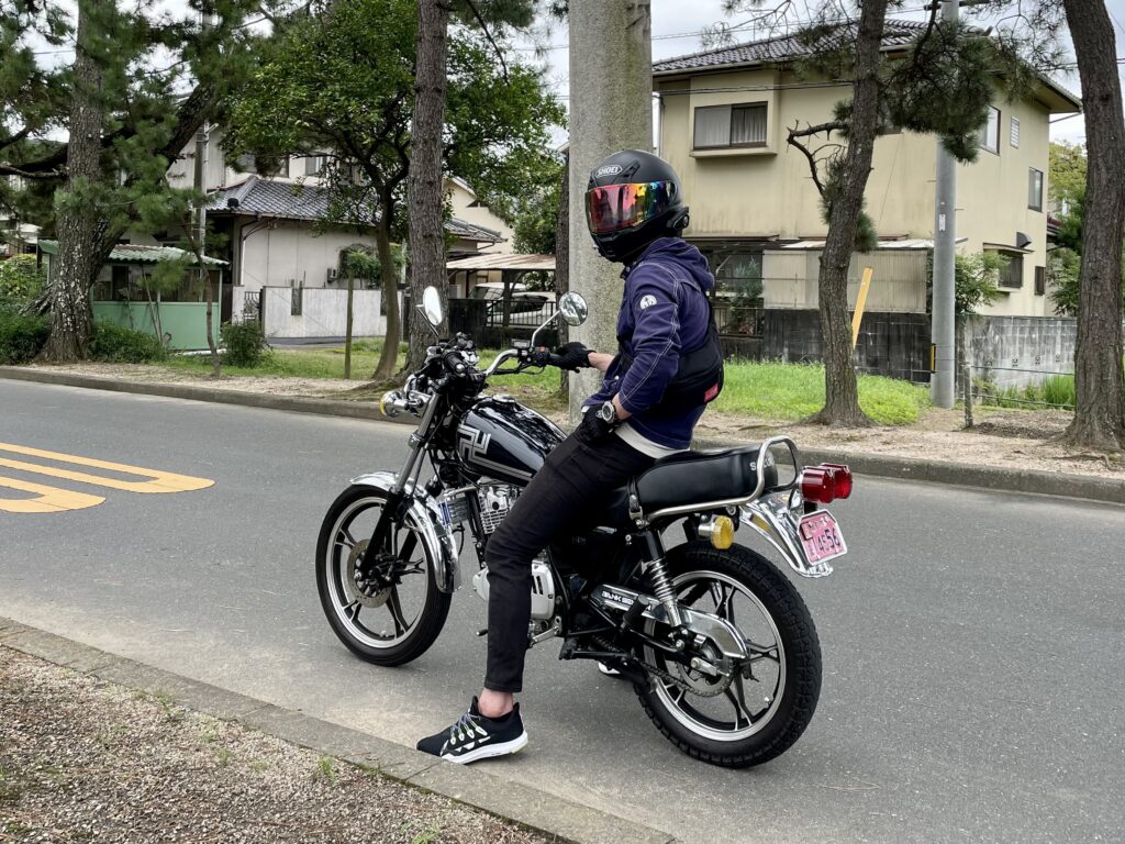GN125Hは小柄ですが、カスタムで迫力が増してサイズ以上の存在感があります。