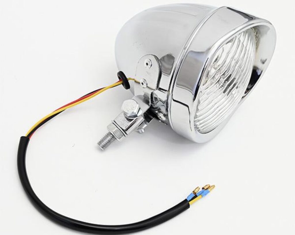 取り付けたのは、カスタムバイクの定番 ベーツライト(BATESタイプヘッドライト)。