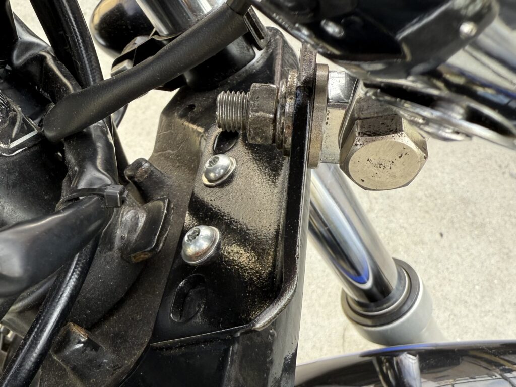 ヘッドライトケースを外し、配線を確認しながら取り外します。 - ヘッドライトステーを装着